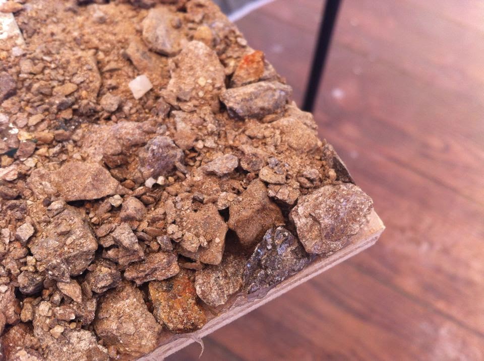 La lechada de cemento la repartimos por el mosaico, y con una tablilla la extendemos...